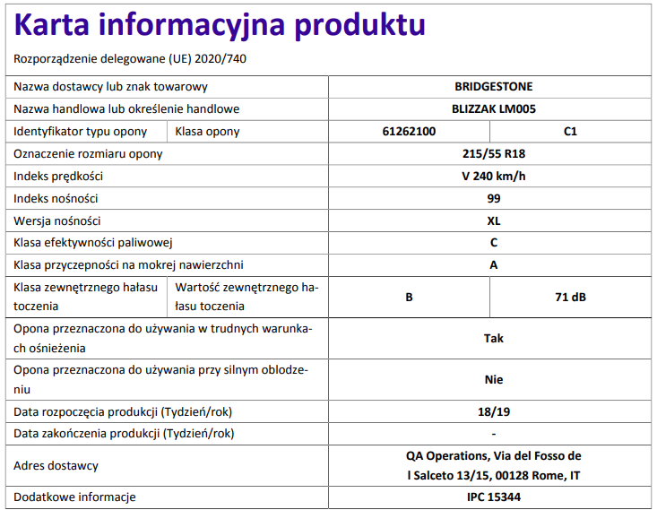 2 599,00 złKompletne koło zimowe ze stopu aluminium prawe w rozmiarze 18 cali z oponą Bridgestone Blizzak LM005 w rozmiarze 215/55 R18 99 V XL.