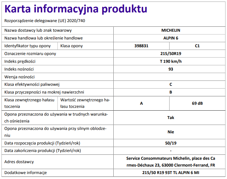 2 980,00 złKompletne koło zimowe ze stopu aluminium prawe w rozmiarze 19 cali z oponą Michelin Alpin 6 w rozmiarze 215/50 R19 93T.