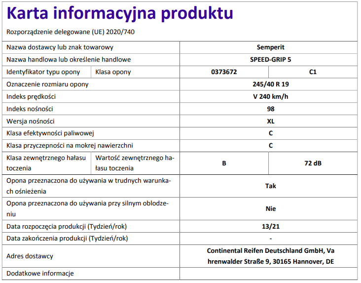 2 999,00 złKompletne koło zimowe ze stopu aluminium lewe w rozmiarze 19 cali z oponą Semperit Speed Grip 5 w rozmiarze 245/40 R19 98 V XL.
